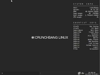 Facendo mente locale, mi torna in mente l'esistenza di una certa Crunchbang, distribuzione basata su mamma Debian e che se non sbaglio, usa i pacchetti del ramo testing. Scarico la iso, creo una virtual machine grazie a VirtualBox, la installo e...