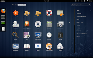 - "Applicazioni", che fa apparire un qualcosa che dovrebbe sostituire il menù omonimo della buon'anima del vecchio GNOME.