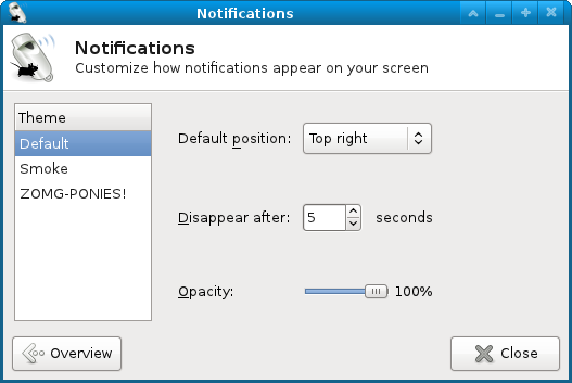 Xfce è un ambiente completo, tant'è che ha un suo gestore delle notifiche. Interattive. Leggere. Customizzabili. Ci piacciono.![]() |