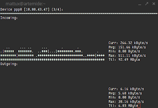 L'output è molto pulito e completo. Mediante le freccie destra e sinistra sulla tastiera possiamo scegliere l'interfaccia di rete da monitorare e con F2 possiamo accedere al menù opzioni, attraverso il quale è possibile configurare facilmente alcuni parametri dell'applicazione.
